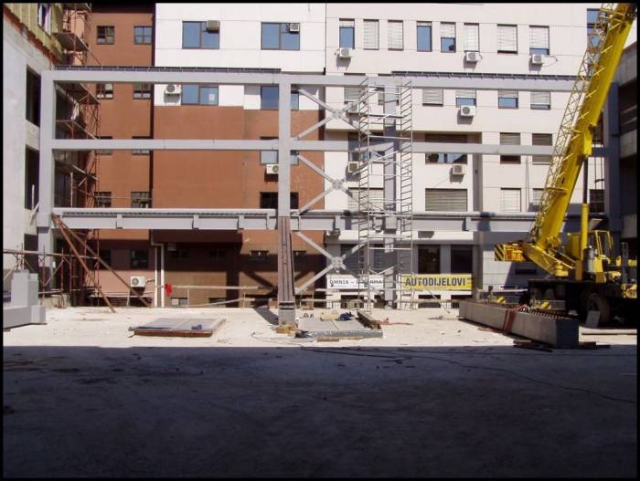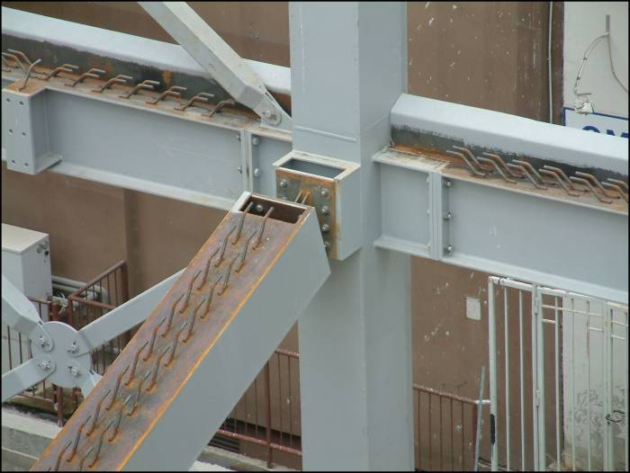 The main elements of the vertical steel frame are the columns connected with horizontal beams.