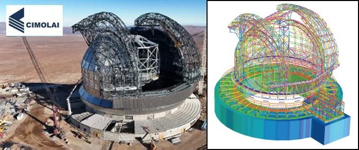 Il progetto Extremely Large Telescope (ELT) della agenzia European Southern Observatory, rappresenta una delle imprese scientifiche e ingegneristiche piu' ambiziose mai realizzate. Situato sulla cima del Cerro Armazones, a circa 3.000 metri di altitudine nel deserto di Atacama, in Cile, ELT sara' il piu' grande telescopio ottico e nel vicino infrarosso al mondo, con uno specchio principale (M1) di 39 metri di diametro, composto da 798 segmenti esagonali. L'ELT impieghera' sofisticate tecnologie di "ottica adattiva" per compensare la turbolenza della atmosfera terrestre e per garantire che le sue immagini siano piu' nitide di quelle di qualsiasi altro telescopio. ELT e' costituito da una cupola "Dome" di altezza pari a circa 80 metri e diametro 93 metri, garantendo la protezione necessaria alla struttura interna del telescopio "Main Structure" dall'ambiente estremo del deserto. Cimolai, oltre ad essere general contractor e fornitore delle strutture metalliche, ha sviluppato il progetto PDR (Preliminary design phase), FDR (Final Design Phase) e MRR (Progetto costruttivo) della struttura principale in carpenteria metallica e delle strutture secondarie quali accessi (passerelle, piattaforme, scale, vani ascensore). Il codice di calcolo Straus7 e' stato utilizzato per la realizzazione del modello FEM globale ad elementi finiti tipo beam e plate&shell della carpenteria metallica del Dome e della Main Structure, sia in fase di esercizio che in fase di montaggio sfruttando la "construction stage analysis". Straus7 e' stato inoltre utilizzato per analisi lineari e non lineari per materiale e geometria di modelli locali a elementi finiti plate&shell e brick per le verifiche di resistenza, fatica e rigidezza di nodi, connessioni bullonate e saldate. Testo, foto e immagini dei modelli di calcolo per gentile concessione di Cimolai Spa. |