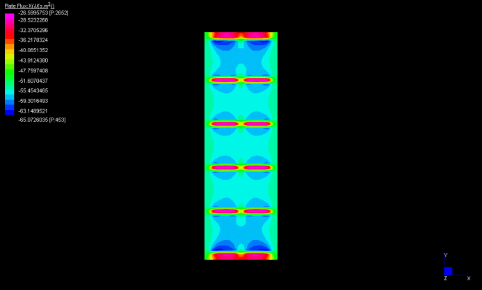 Dopo una accurata discretizzazione di ogni singolo elemento della parete in esame, STRAUS fornisce gli andamenti della temperatura e del flusso termico attraverso la parete stessa. Le immagini di seguito riportate si riferiscono a due elementi di laterizio forato, il primo destinato alla realizzazione di pareti interne (tavelloncino ordinario 8x25x25), il secondo destinato ai tamponamenti (TR9 30x25x25).