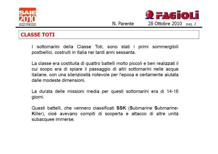 Seguono alcune slides tratte dalla relazione tecnica tenuta al SAIE 2010